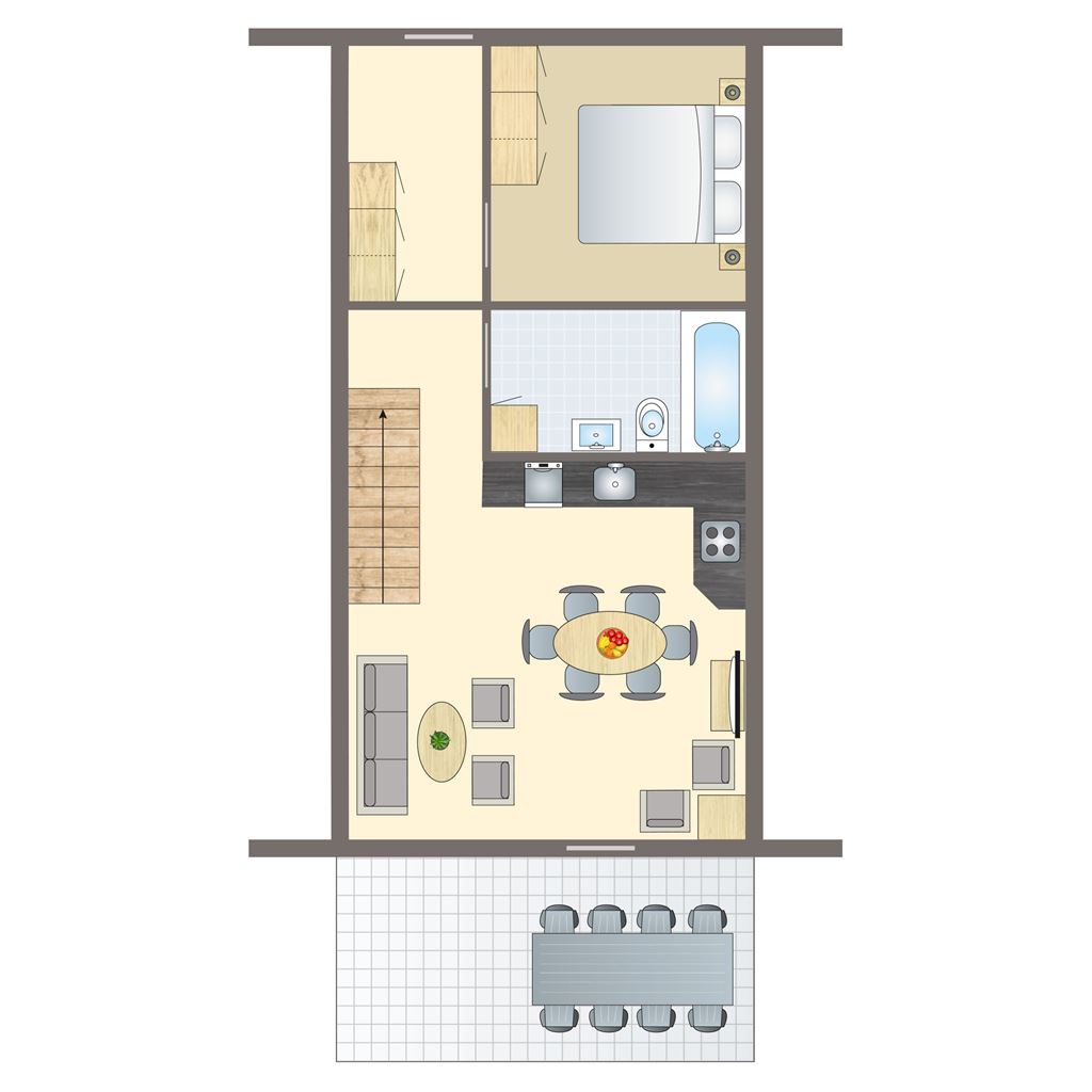 - Enkele traptreden naar accommodatie