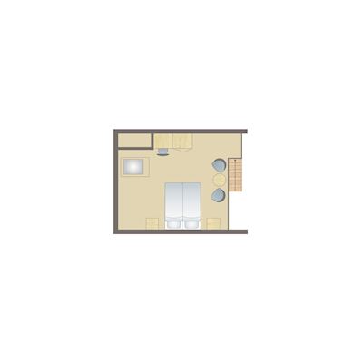 Feriebolig med privat terrasse og åpen kjøkken-/spisestue og stue. 1 soverom med 2 senger, en stor åpen hems med 2 senger og en sovesofa i stuen for 2 personer. Ferieboligene er privateide, og beskrivelser, bilder, spesifikasjoner og plantegninger av boligene er derfor veiledende og kan variere.