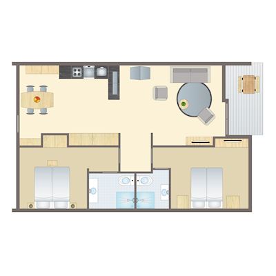 Beskrivelsene, bildene, spesifikasjonene og planløsningene for ferieboligene kan endres.